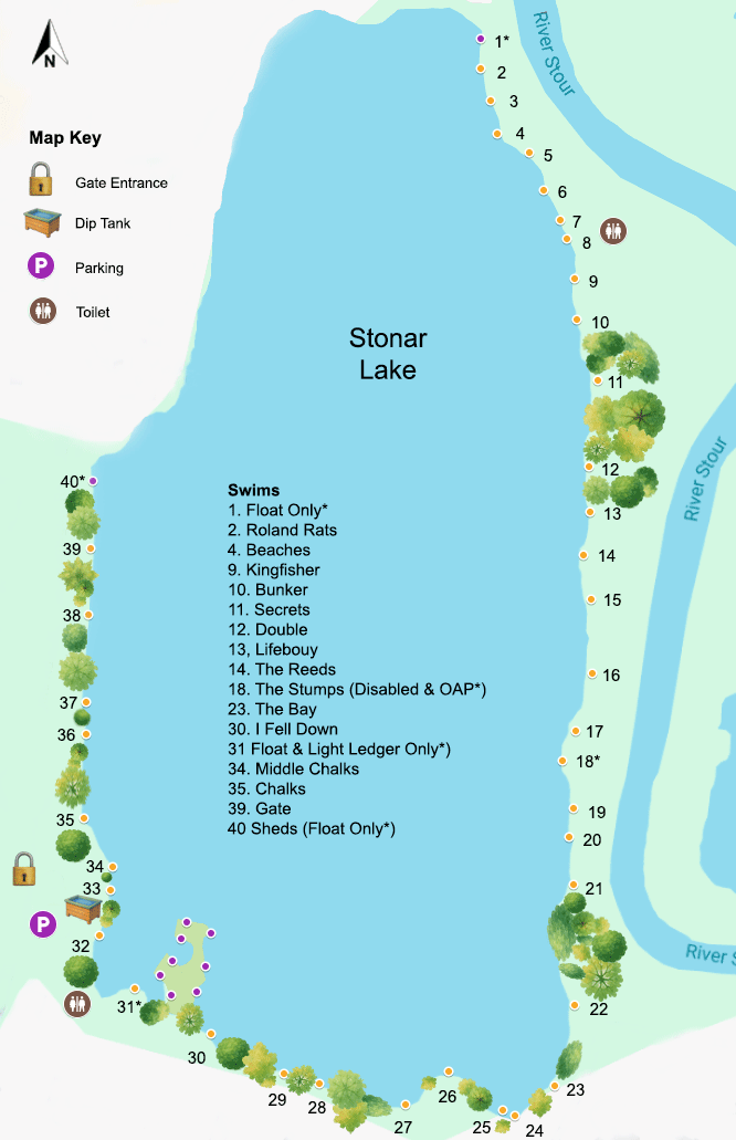 Swims 1, 40 & the Float Arm are restricted to float fishing only.